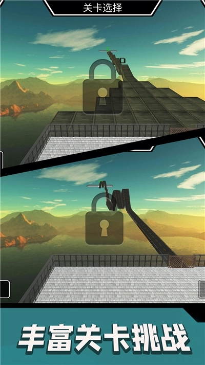 在这款游戏里,你会成为一名特技赛车手,驾驶着自己的豪车,奔驰在万米高空的赛道上。赛道十分狭窄,还有各式各样的障碍等着你去跨越,赛道下方是深不见底的万丈深渊,要是车速太快,稍不留意你和你的豪车就会摔得粉身碎骨。