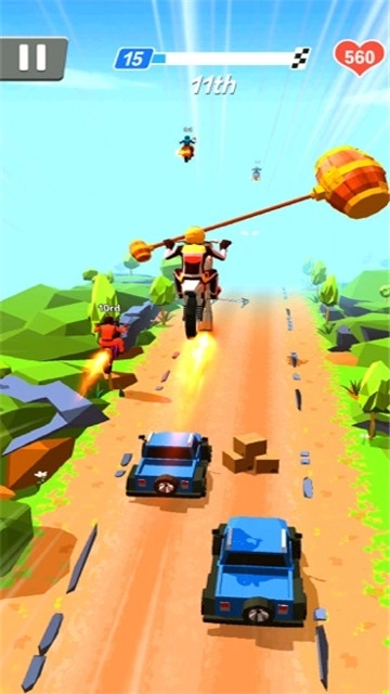 这款游戏和旧版暴力摩托有些相似,在赛途中碰到对手时,也能通过挥棒发起挑战。