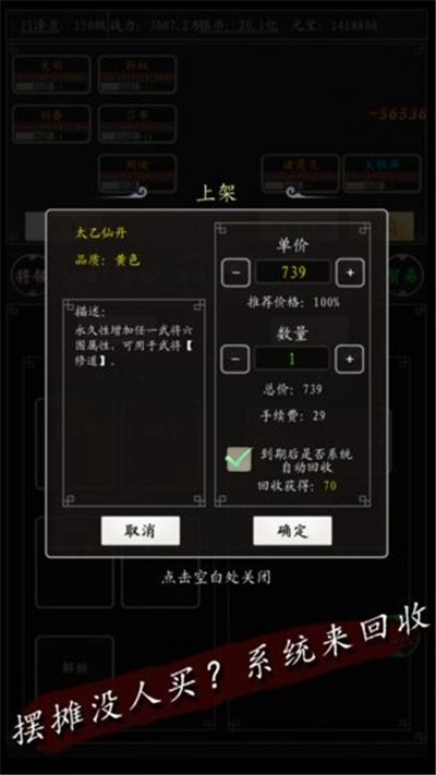 1、您是否会担心摆摊售卖的物品无人问津?完全不必忧虑,在游戏里,若您摆摊的物品长时间没有玩家购买,系统会自动进行回收,并按照市场价格返还对应的资源,绝对不会让您额外氪金!