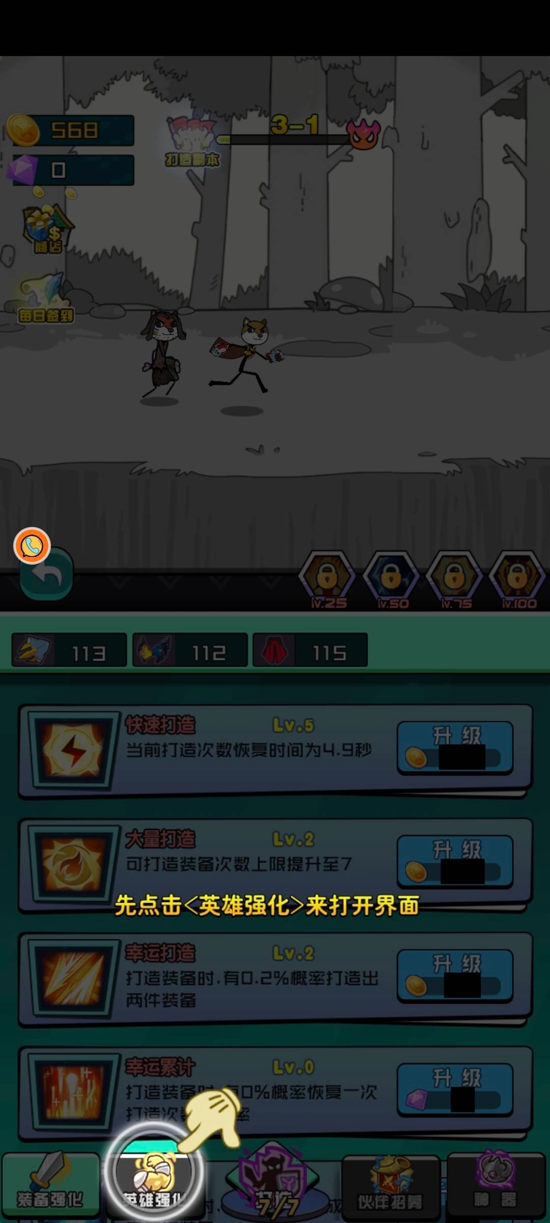 6、使用金币能够对自身进行强化,点击英雄强化即可打开相应界面。