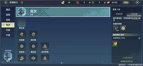 育灵的主要功能是孵化元胎、培育花草以及养殖鱼苗。除了孵化巢之外,其他功能可以等到游戏中期再解锁。