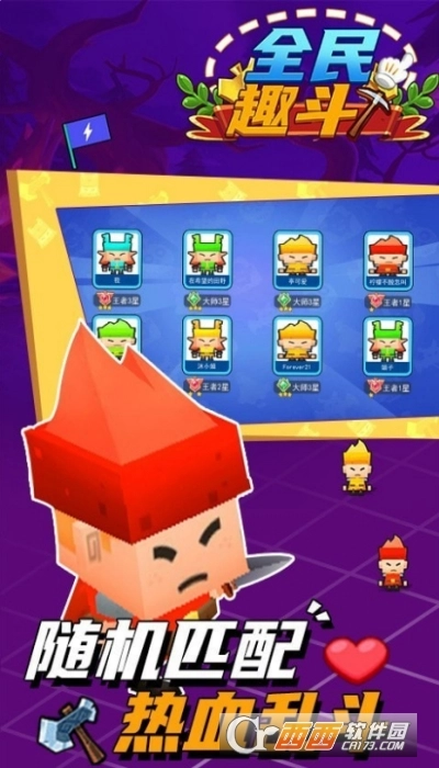 全民趣斗是一款欢乐有趣的多人乱斗竞技游戏,采用生动有趣的3D画风,自由选择你的角色外观,随时上线与其他玩家展开欢乐有趣的竞技比赛,海量武器可以使用,在多种场景中展开对决,绝对会让你爱不释手!