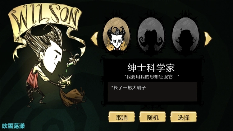 威尔逊仅有的特殊能力是他的胡须会定时变得茂密。作为一名基础角色,他的生命值、理智值和饥饿值都处于预设水平,并且没有任何缺点。总的来说,威尔逊在冬天比其他角色具备一定优势,也更容易制作复活肖像,他均衡且不弱的属性让玩家认为他是最容易上手的角色之一。