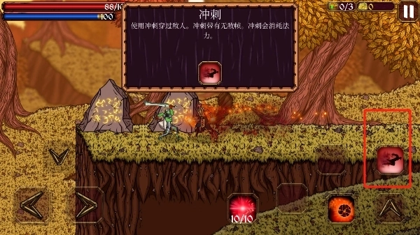 4、遇到敌人时点击冲刺按钮刺穿敌人施加伤害。