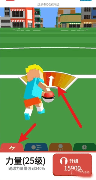 点击左下方的闪电图标直接对准足球全力一踢