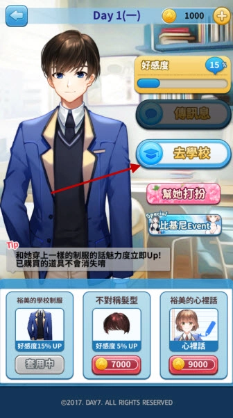 点击去学校,就能进入剧情开始游玩了。
