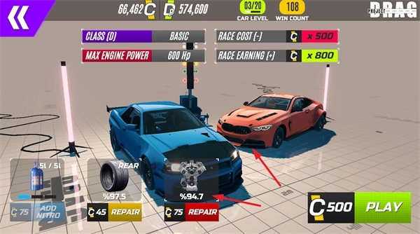 2、新增自定义功能,玩家能够自由设计汽车外观,还可以替换等级更高的零件。