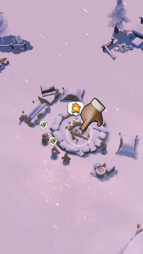 操作方式十分简便,只需点击想要采集的树木,就能派工人过去进行采集。木材被带回营地后,要记得及时把它添加到火堆里,这样才能保证温暖的持续供应。