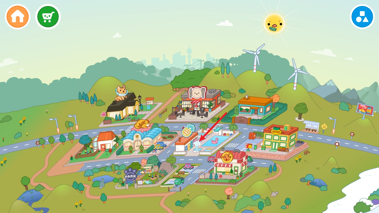 进入游戏后,我们可以随意点击一个建筑进入。