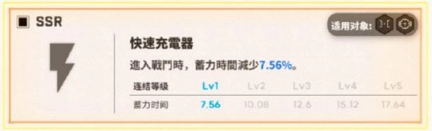 蓄力时间缩短 :这是一种操作类增益效果,当效果达到满级时,能够减少17%的蓄力时间。