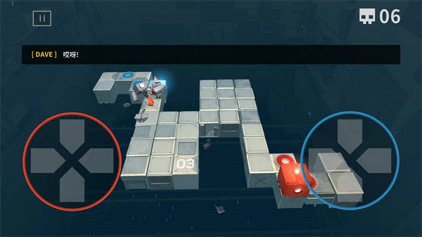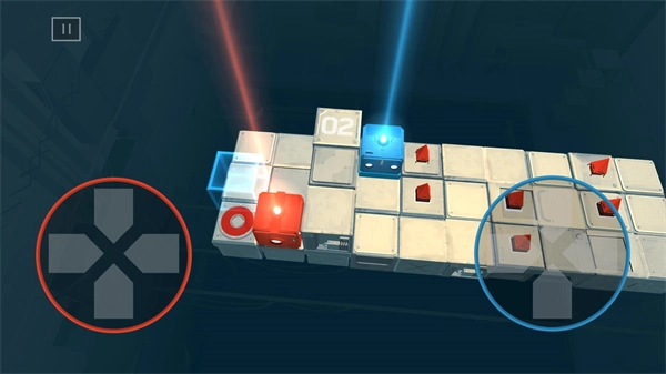 进入关卡后,左侧的摇杆用于操控红色机器人移动,右侧的摇杆则负责控制蓝色机器人的移动。