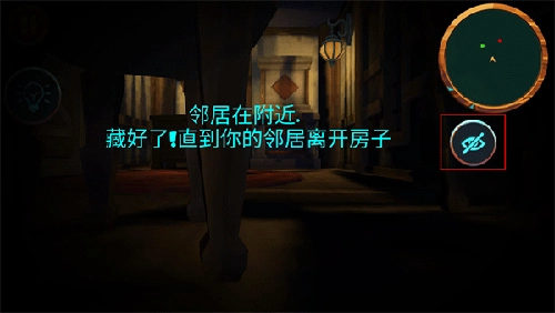 5、在游戏过程中,邻居随时会来到你的附近,这时点击探测器下方的小眼睛,别让他发现啦。完成了一个任务点击【next】就可以继续完成下一个任务了。