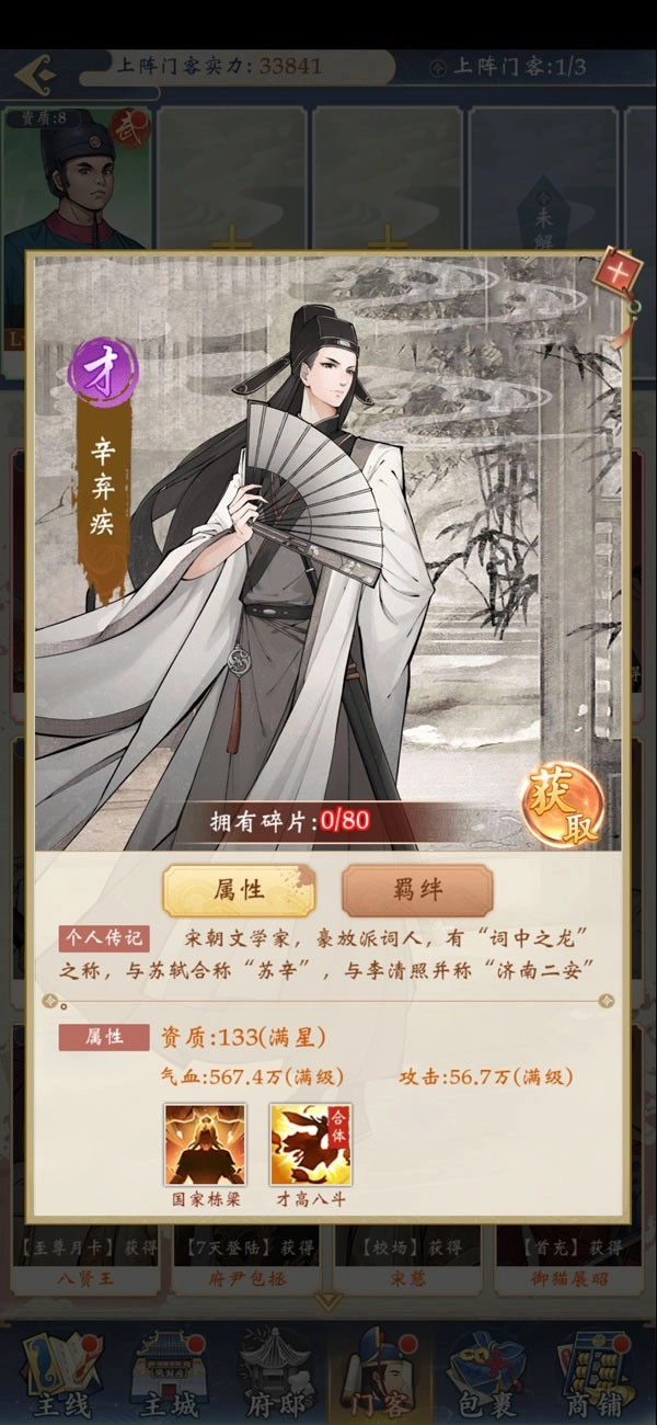 在正常品质的橙色门客里,可以围绕府尹包拯来构建搭配并安排上阵。而在聚贤阁中兑换获取的门客,彼此之间也都存在着羁绊关联。