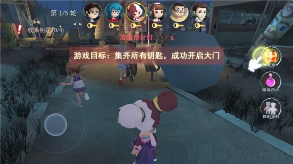 3.扮演隐藏者时,在场景里的箱子间穿梭以获取钥匙,利用地形与道具来隐藏自身,依靠角色技能躲避BOSS的追击,集齐钥匙后完成逃脱。