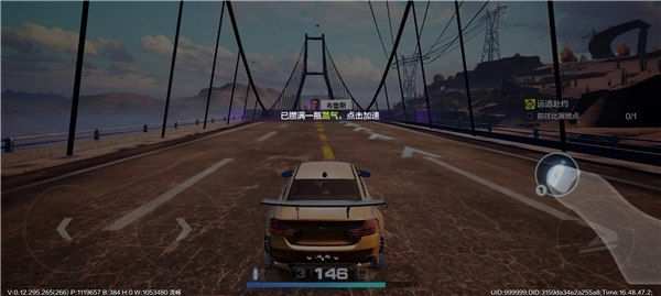 5、漂移后已经攒满了氮气,点击氮气可以加速;