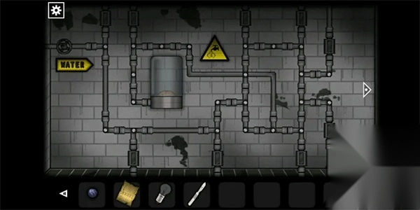 先退出房间,然后走到工具房门口,按照水池里的提示打开铁门。进入房间后把水管连接好,接着点击左上角的阀门。