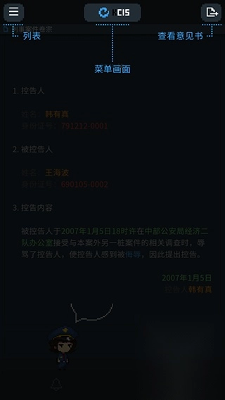 3. 游戏内容十分充实,玩家能够依据不同的证据来撰写调查意见,还可以通过辩论的方式对嫌疑人的辩护进行反驳。