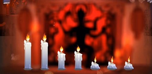 1、窗户上有蜡烛,解开神像前的蜡烛谜题后获得半截蜡烛,随后向右移动并切换场景