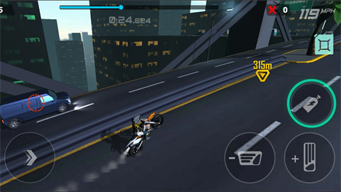 特技摩托车极限明星化身为驾驭顶尖摩托的车手,投身于惊险刺激的竞速对决,开启特技挑战之旅,或是参与秘密行动任务。在过程中需精准把握时机,进行加速、跳跃或闪避操作,避开沿途的障碍物与敌人,展示炫酷的摩托车特技,准备好迎接肾上腺素飙升的极致体验。