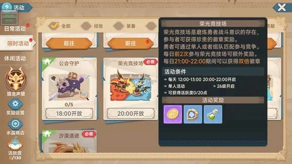 荣光竞技场跨服争锋,限时开放时段内战意最为炽烈。双倍徽章时段集中在晚间,前两场匹配奖励丰厚,把握窗口期参战,可加速徽章积累进度。