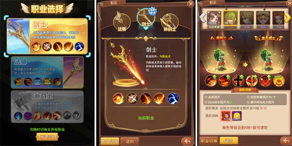 职业体系贯穿角色成长全程,主角初始可选法师或剑士,后续逐步解锁斧战士等多元定位,同伴职业则固定不可更改。