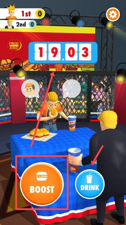 2、比赛过程中要留意时间,合理借助BOOST加速来吃汉堡,及时通过DRINK缓解,维持好进食的节奏,从而超越对手。