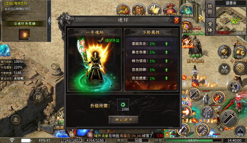 (2)提升转生等级可去新的大陆,新大陆怪物属性增强,装备爆率更高!