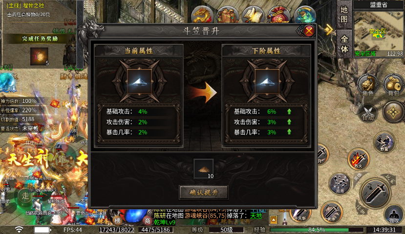2、游戏中还有的“斗笠晋升”,可以增加珍贵的“暴击率”,并且并不消耗共享资源,玩家能升则升。