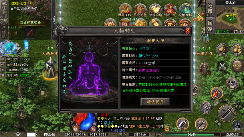 6、还有最为重要的一点就是自身的转生,提升自己的境界可以对敌人造成境界压制,对于pvp玩家而言,是绝佳的提升途径。