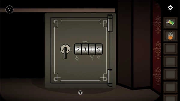8.再查看这个保险箱,这个保险箱的外表特别唬人,看起来是用钥匙开的,其实放大了之后发现是密码解锁。对着图案输日历和人嘴的数字就行,不用管图案的位置。输入2139,获得钥匙和酒精灯。81、82、83