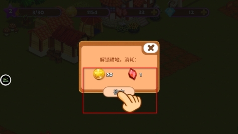 2、解锁新耕地时会弹出消耗提示框,需消耗指定数量的金币与红宝石,确认消耗这些资源后,即可解锁新耕地,从而扩大种植面积。