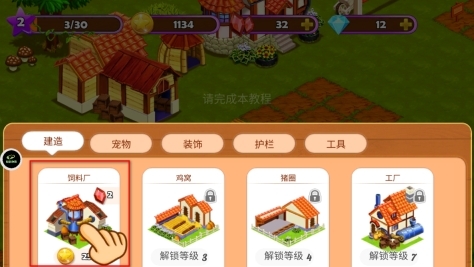 3、建造栏中设有饲料厂、鸡窝等多种建筑选项,玩家只需挑选可建造的建筑,消耗相应的金币与红宝石,即可在农场内完成该建筑的搭建,从而丰富农场的设施配置。