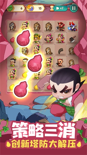 《葫芦娃大作战》最新版本是一款以经典动画《葫芦娃》为蓝本打造的策略战斗游戏。在游戏里,玩家将率领葫芦兄弟及其伙伴们共同投身战斗,目标是营救爷爷、击溃邪恶势力,守护世间的正义与和平。