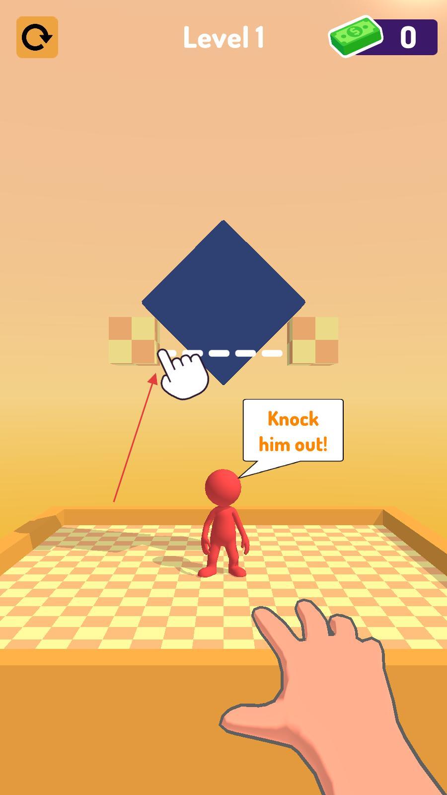 1、进入激光切割界面,看到红色小人和蓝色方块后,按照提示操作蓝色方块,试着让红色小人被击倒,以此推进游戏进程。