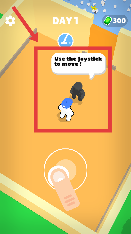 1、进入首日关卡后,按照界面提示操作虚拟摇杆,控制蓝白角色移动,使其靠近黑色角色。