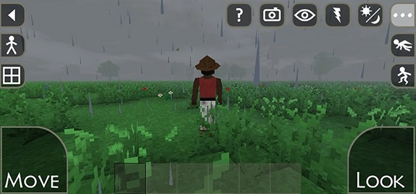 7、右上角的功能按钮用于控制角色视角和场景天气等,目标是在这个地图中成功存活下去。