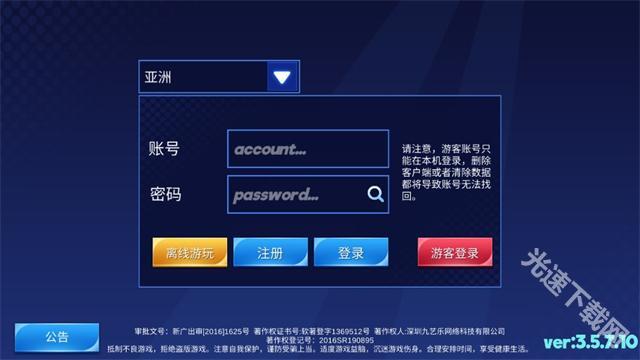 1、进入游戏后登录个人账号,若没有账号,可选择注册新账号或使用游客身份登录。