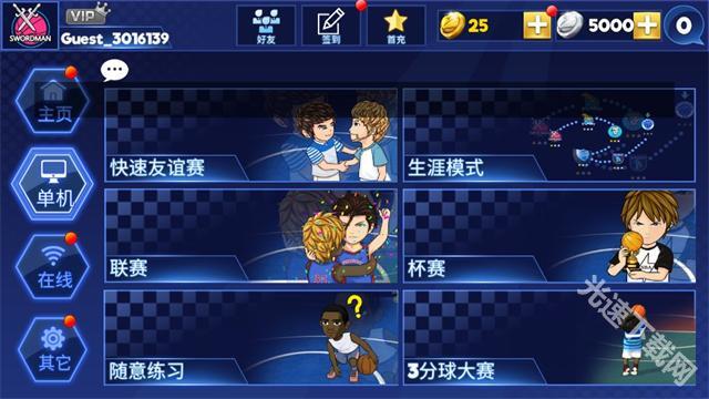 1、单人模式包含快速游戏、联赛、杯赛、三分球大赛、练习模式等多种类型