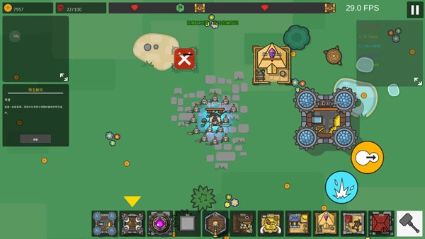 建造实用的建筑,像金矿、箭塔、房屋和法师塔。金矿可建在矿山之上,协助你收集金矿,不过这些金矿十分诱人,因此你得通过战斗来夺取它们,并且要为守住它们而战斗。要是你无法占领任何矿山,也能通过收集散落在土地上的硬币以及击败敌方单位来获取大量金钱。