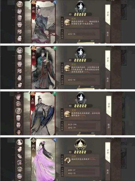 荀彧(高减冷却),貂蝉(再动),张辽(刷新技能),陈群(减少冷却)。