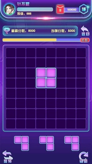 2.通过消除方块生存下去,获得高分,成功闯关获得新奖励。