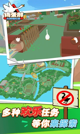 2、滑稽的动作设计和趣味十足的任务挑战,灵活操作你的鹅穿梭于公园各个角落。