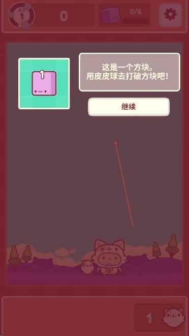 2、玩家会从新手关卡开启游戏进程,尝试按照指引,利用皮皮球来击碎方块。