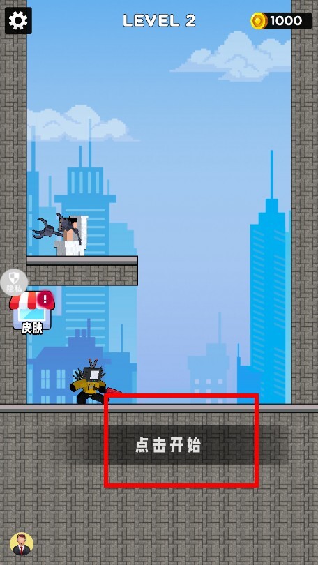 1、进入关卡后,点击开始按钮,操控角色来到城市建筑间的平台上,做好与对手对决的准备,正式开启战斗。
