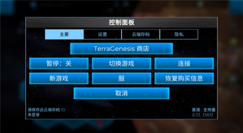 2、进入星球控制面板,这里可以找到游戏的主要设置项。