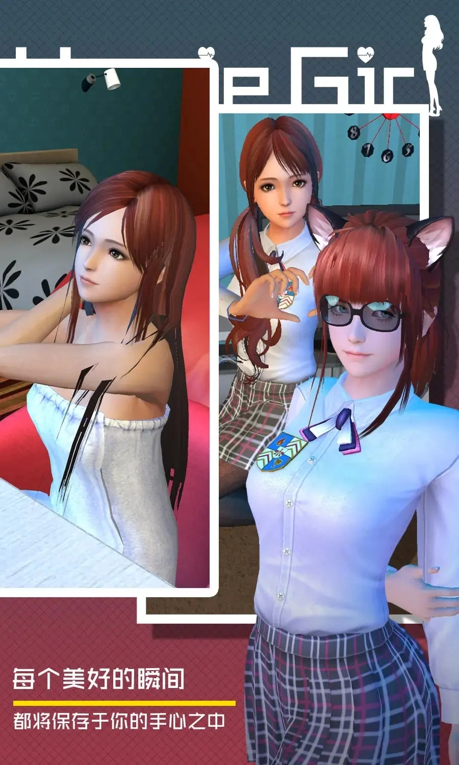 5、超轻松自在的女友养成玩法,能够在任何时候去她房间,边查找资源,边调查她的一举一动!