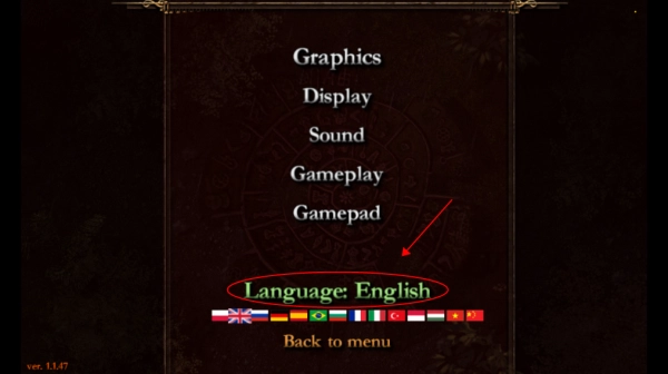 1、完成游戏安装后,进入主界面找到“语言”设置项,点击“language English”即可完成切换。