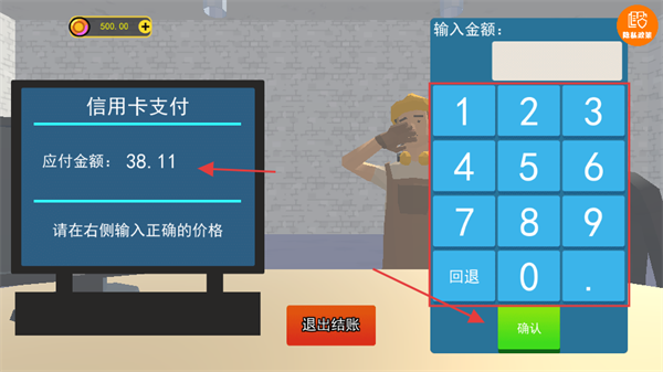 4、进行收银操作时,依据需支付的金额,通过数字键盘输入对应数值,确认无误后完成该笔交易。