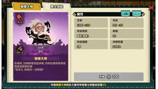 【驯猪大师】的特殊技能为,在其进行合成操作时,会召唤出一只野猪发起冲锋,对一整排的敌人都造成伤害。