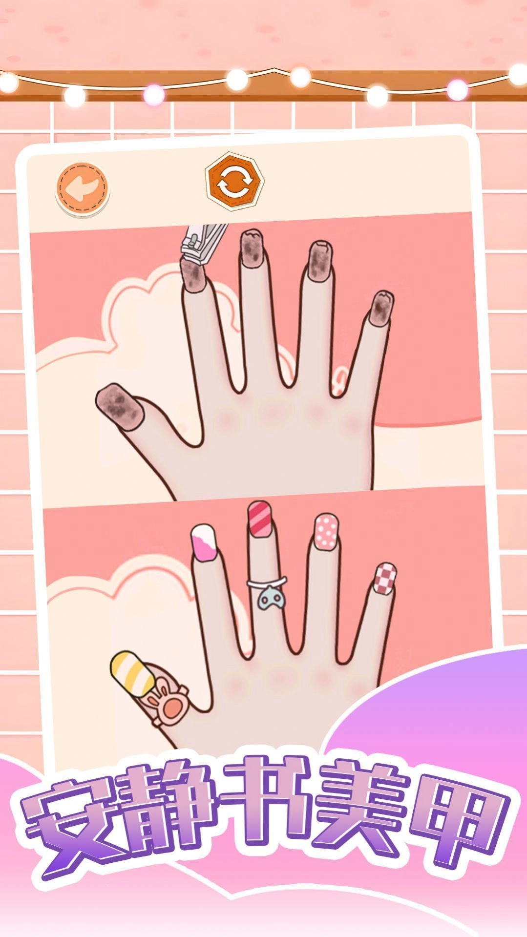 安静书美甲是一款轻松有趣的模拟游戏。在游戏里,你将化身美甲师,为顾客打造精致漂亮的美甲造型。玩家可以挑选不同风格的指甲油、贴纸、饰品等装饰元素,通过点击屏幕来绘制独一无二的图案与花纹。游戏十分注重细节与创意,为玩家提供了丰富的设计选项。此外,还能通过手势操作进行手部按摩和护理,让顾客倍感放松与舒适。游戏的配乐轻柔典雅,画面简洁清新,为玩家营造出宁静美好的氛围。无论是下班之后还是想要放松的时候,都可以通过这款游戏享受一段悠闲惬意的时光!